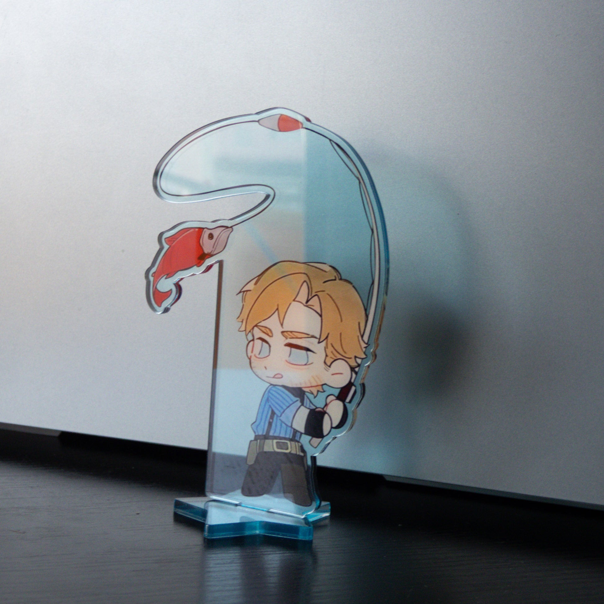 Inspired by the popular video game Red Dead Redemption II, this acrylic figure is featuring a detailed and humorous design of Arthur Morgan fishing.