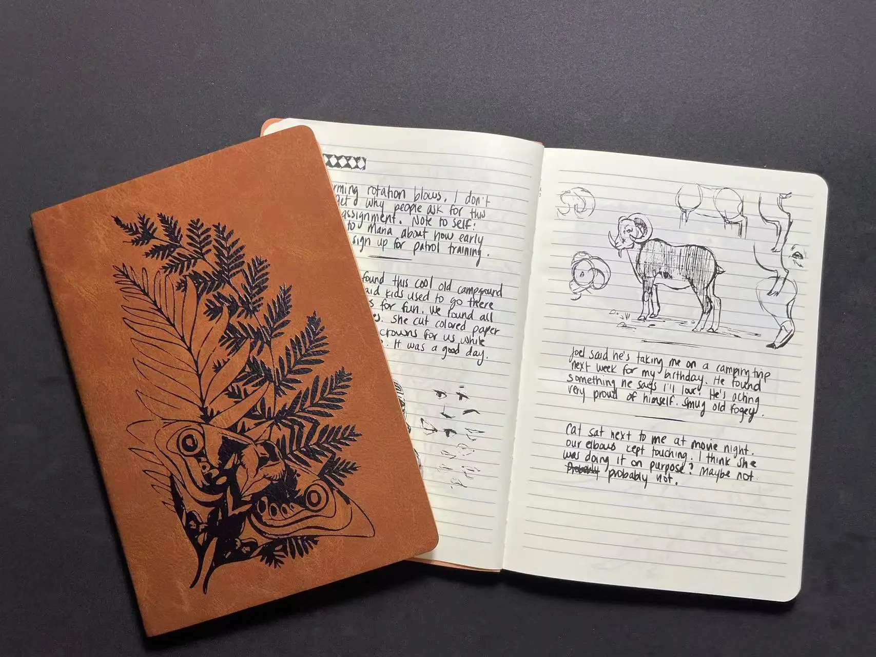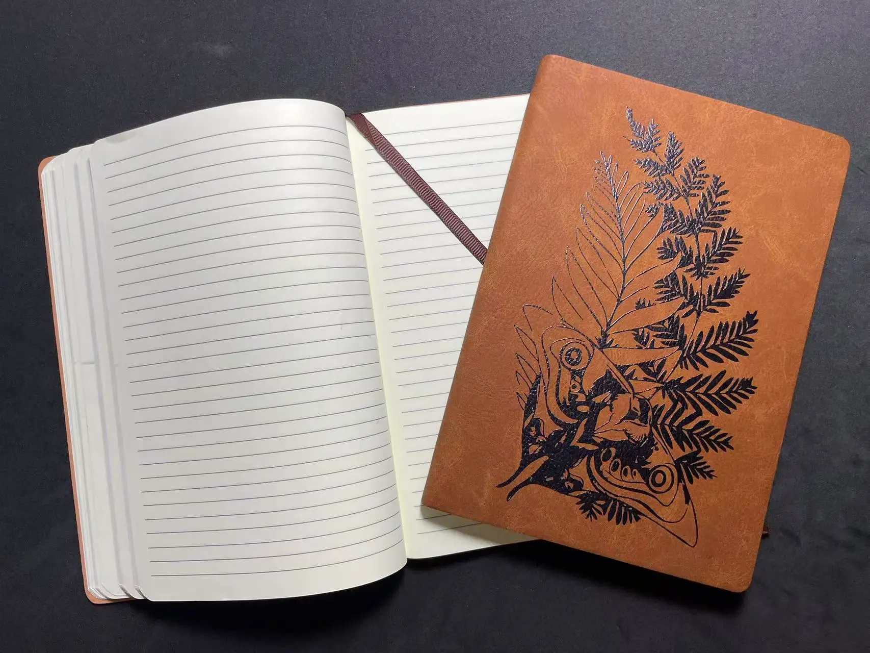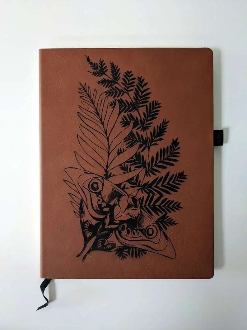 Ellie's Tattoo is laser engraved in beautiful detail on this leatherette (faux leather) notebook.